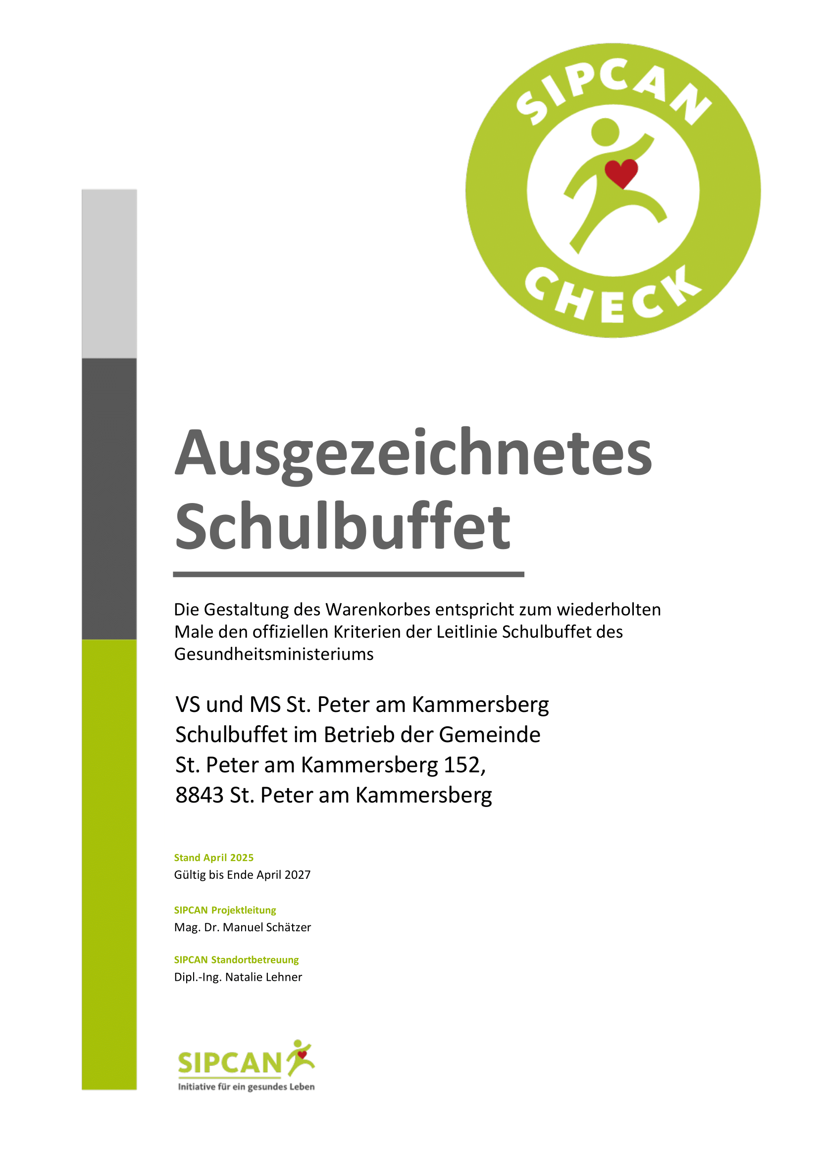 Eine gesunde und ausgewogene Pausenverpflegung liegt unserer Schule am Herzen! Aus diesem Grund nehmen wir am Schulbuffet-Check von SIPCAN (www.sipcan.at) teil.