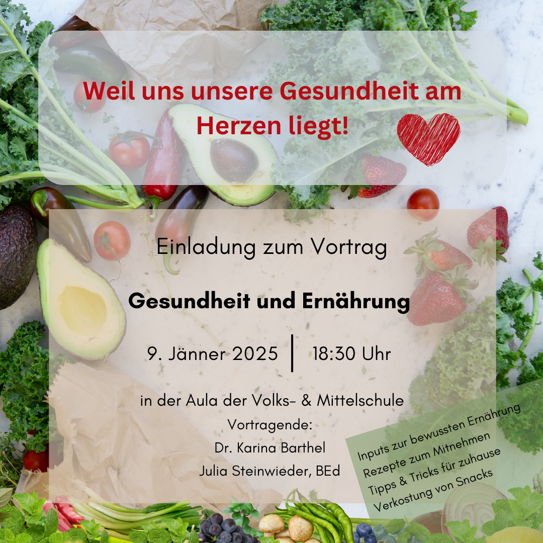 Herzliche Einladung zu unserem Vortrag zum Thema "Gesundheit und Ernährung"
